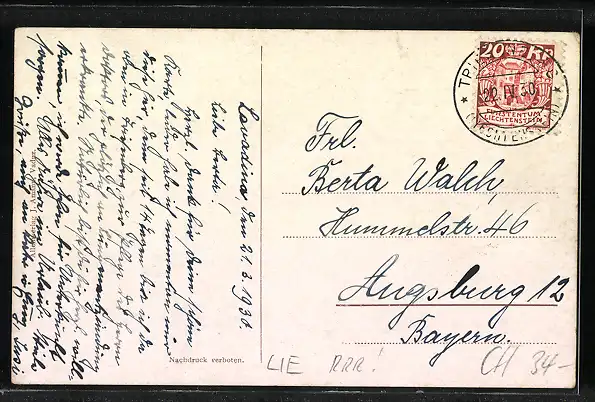 Ein Angebot in Ansichtskarten Liechtenstein - 1.635 weitere Angebote in dieser Kategorie