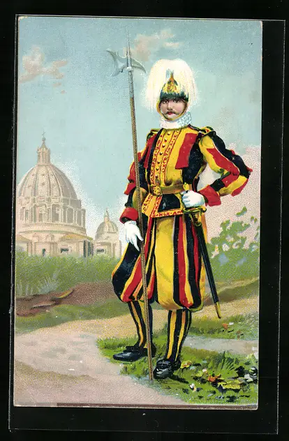 Künstler-AK Vatikan, Wächter in Uniform mit Hellebarde