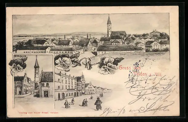 Künstler-AK Velden a. Vils, Ortsansicht, Strassenpartie, Kirchgasse