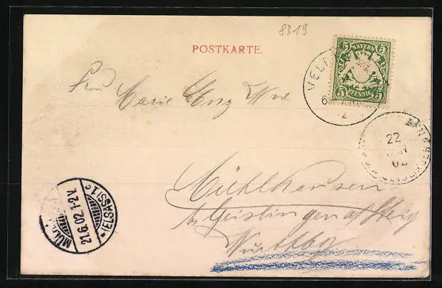 alte Ansichtskarte, gelaufen 1902, Einriss li. mittig, guter Zustand