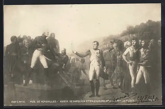 Künstler-AK Versailles, Musée de Versailles, Adieux de Napoleon et d`Alexandre, apres la Paix de Tilsit