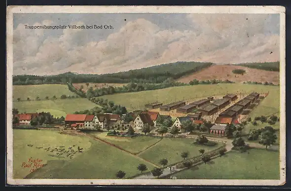 Künstler-AK Villbach, Blick auf den Truppenübungsplatz