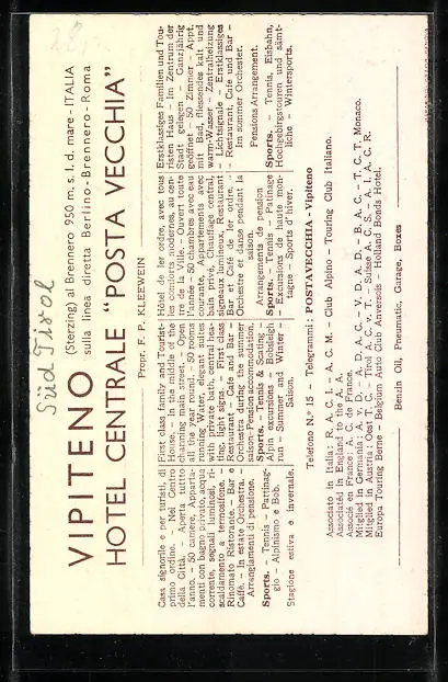 Künstler-AK Vipiteno, Hotel Centrale Posta Vecchia