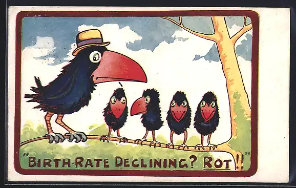 Künstler-AK Vogel sitzt mit seinen vier Kindern auf einem Ast