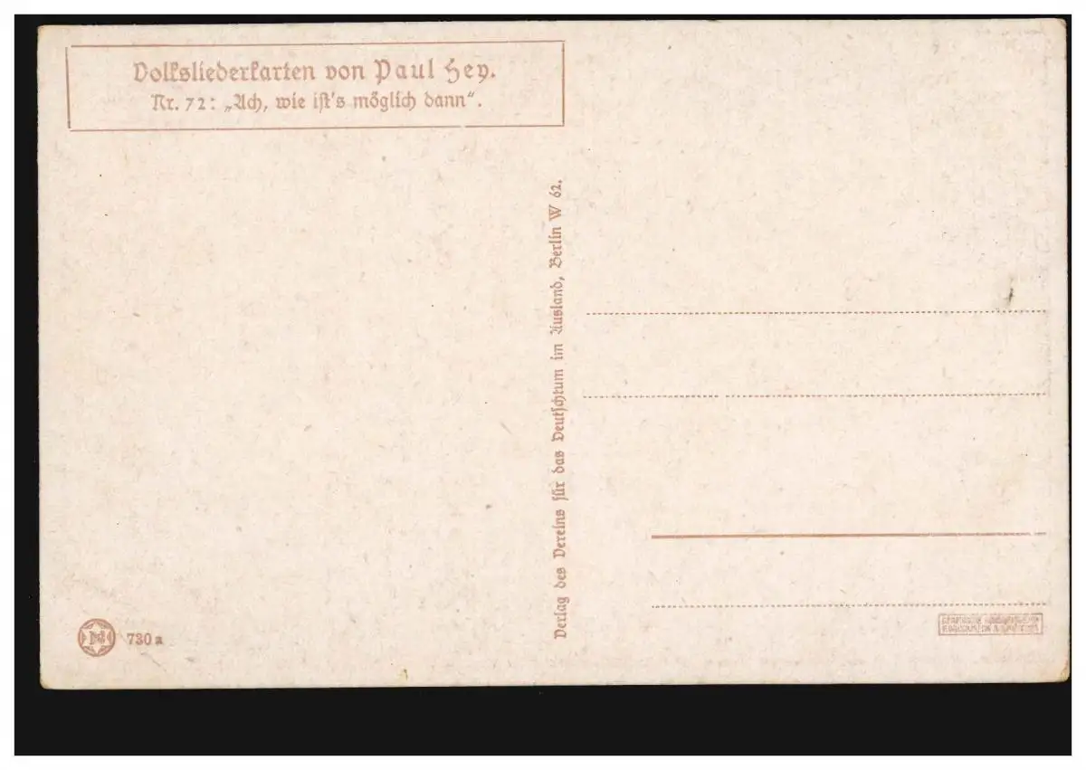 Künstler-AK Volksliederkarte Paul Hey: Ach, wie ist's möglich dann, ungebraucht