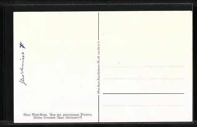 Personenbezogene Daten auf der Rückseite der Karte wurden durch blauen Textmarker unkenntlich gemacht. Die blauen Stellen sind auf die Vorderseite durchgeweicht und wirken sich negativ auf das Postkartenfoto aus