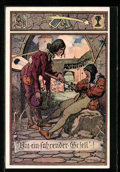 Künstler-AK W. Braun: Ich bin ein fahrender Gesell, Nachtwächter