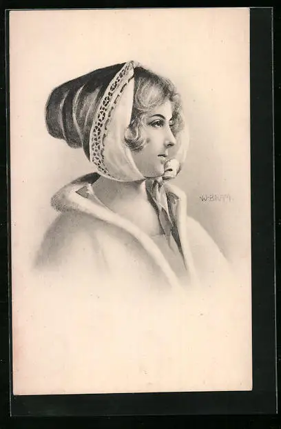 Künstler-AK W. Braun: Junge Frau mit Haube