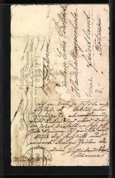 alte Ansichtskarte, gelaufen, Bugspur oben, Eckknick li. oben, Briefmarke entfernt, rückseitig Oberflächenschaden, guter Zustand