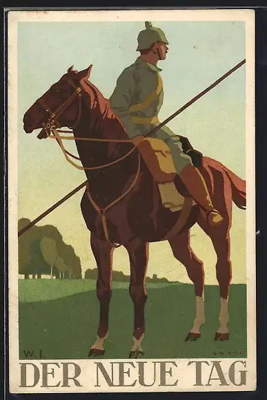 Künstler-AK W.I.: Deutscher Kavallerie-Soldat zu Pferd
