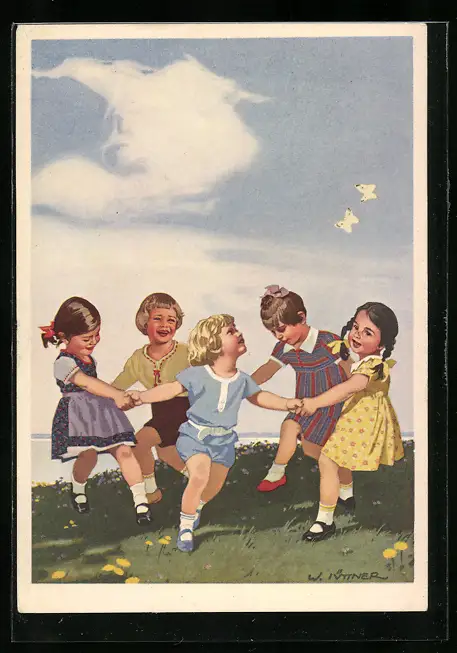 Künstler-AK W.I.: Kinder beim Indanthren-Reigen