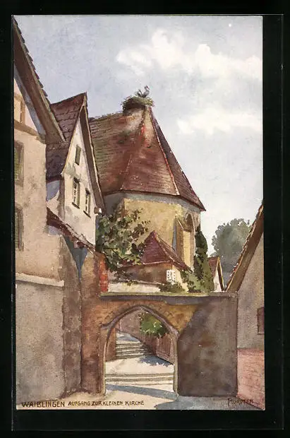 Künstler-AK Waiblingen, Aufgang zur kleinen Kirche