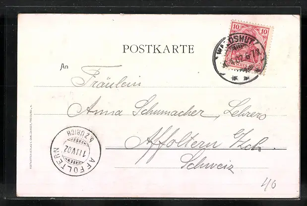 alte Ansichtskarte, gelaufen 1902, guter Zustand