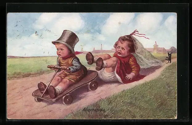 Künstler-AK Wally Fialkowska: Abgerutscht!, Scherz