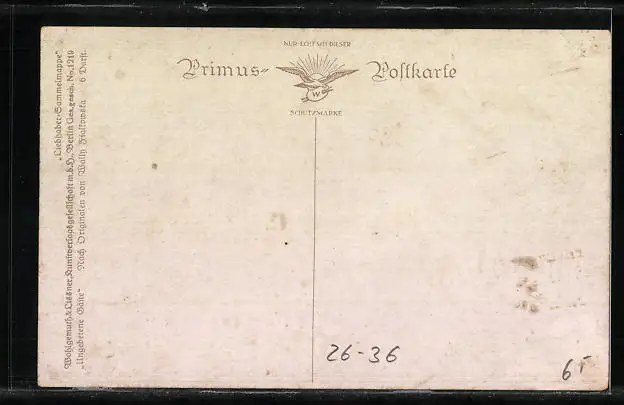 Personenbezogene Daten auf der Rückseite der Karte wurden durch blauen Textmarker unkenntlich gemacht. Die blauen Stellen sind auf die Vorderseite durchgeweicht und wirken sich negativ auf das Postkartenfoto aus