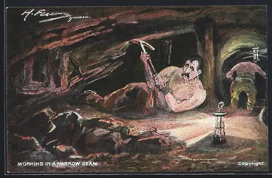 Künstler-AK Welsh Mining Scene, Working in a narrow Seam