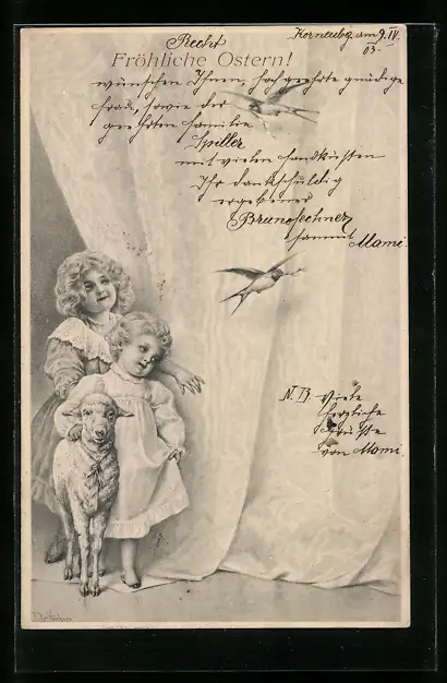 Künstler-AK Wichera: Junge Mädchen in weissen Kleidern mit Osterlamm