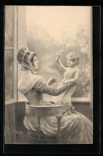 Künstler-AK Wichera: Mutter und Kind am Fenster