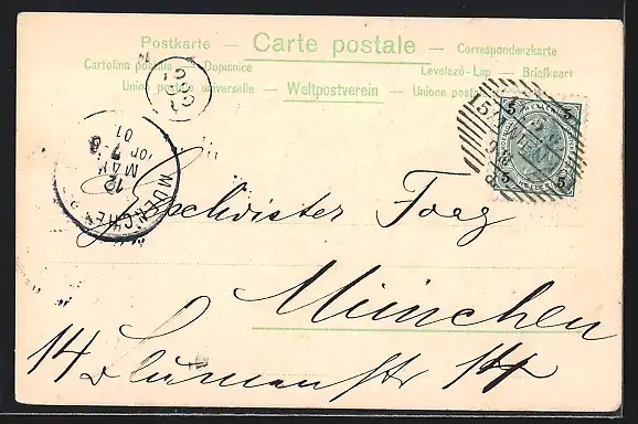 alte Ansichtskarte, gelaufen 1901, Eckknick li. unten, guter Zustand