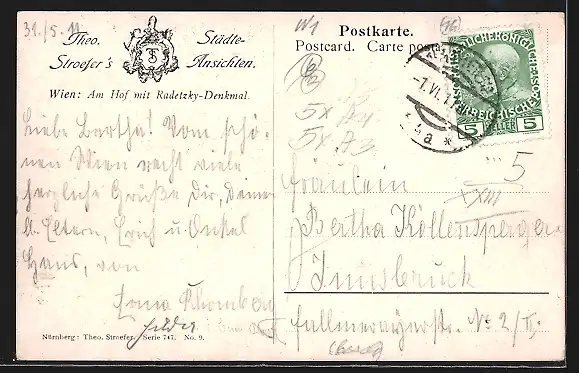 Künstler-AK Wien, Am Hof mit Radetzky-Denkmal