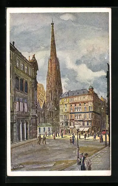 Künstler-AK Wien, Blick zum Stephansdom