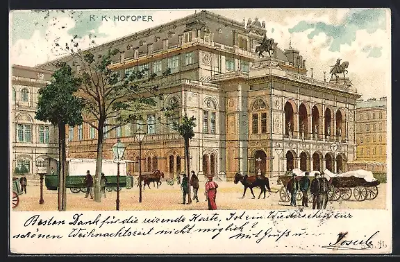 Künstler-AK Wien, K.K. Hofoper, Pferdebahn