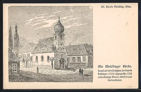 Künstler-AK Wien-Meidling, alte Meidlinger Kirche