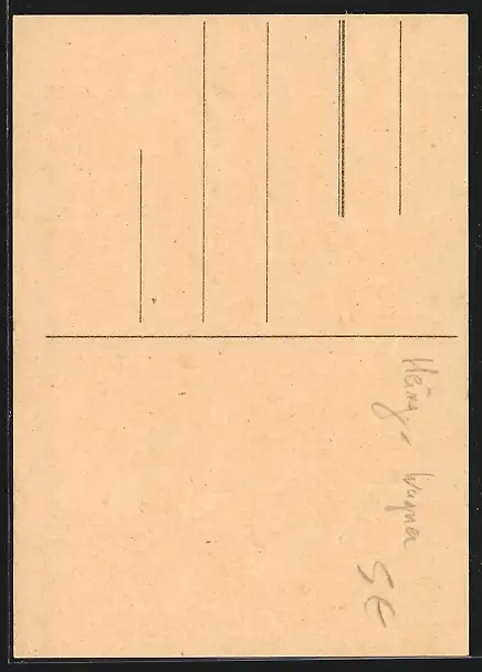 Personenbezogene Daten auf der Rückseite der Karte wurden durch blauen Textmarker unkenntlich gemacht. Die blauen Stellen sind auf die Vorderseite durchgeweicht und wirken sich negativ auf das Postkartenfoto aus
