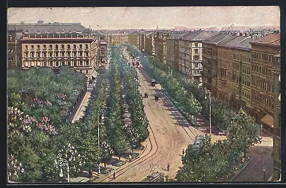 Künstler-AK Wien, Opernring mit Strassenbahn