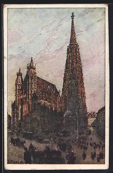 Künstler-AK Wien, Passanten am Stefansdom