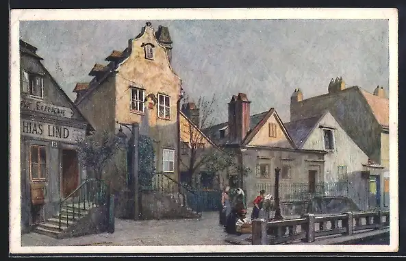 Künstler-AK Wien, Ratzenstadel, alte Wohnhäuser