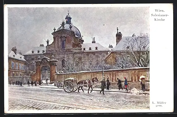 Künstler-AK Wien, Salesianer-Kirche im Winter