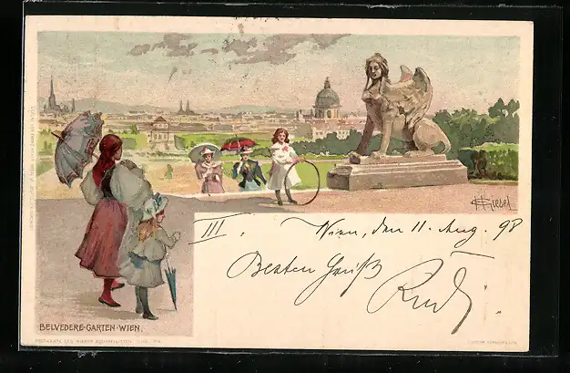 Künstler-AK Wien, Statue im Belvedere-Garten
