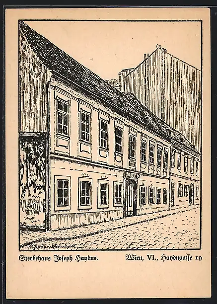 Künstler-AK Wien, Sterbehaus Joseph Haydns, Haydgasse 19