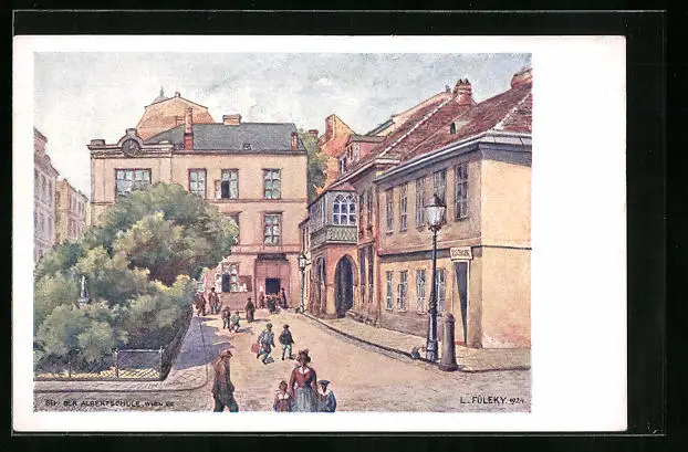 Künstler-AK Wien, Strassenpartie bei der Albertschule