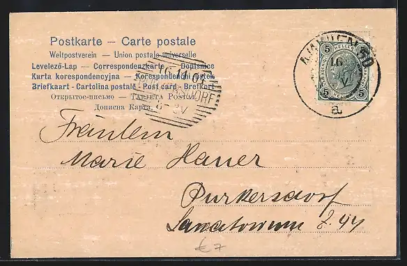 alte Ansichtskarte, gelaufen, Eckknick oben re., Stempelspur, guter Zustand