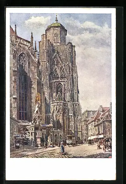 Künstler-AK Wien, unausgebauter Turm der Stefanskirche
