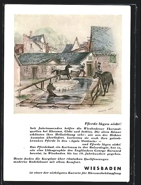 Künstler-AK Wiesbaden, Pferde beim kurierenden Bad