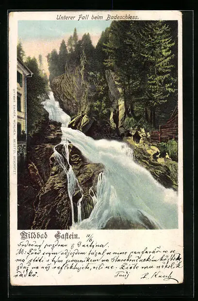 Künstler-AK Wildbad Gastein, Unterer Fall beim Badeschloss