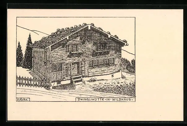 Künstler-AK Wildhaus, Blick auf Zwinglihütte