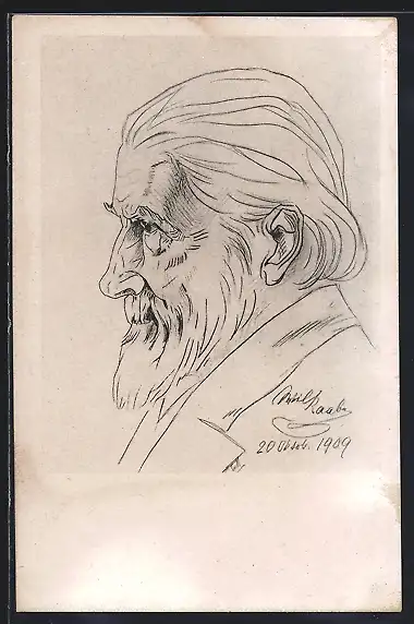 Künstler-AK Wilhelm Raabe, Profilportrait