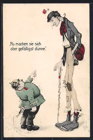 Künstler-AK Willi Scheuermann: Kleiner Polizist und grosser Landstreicher