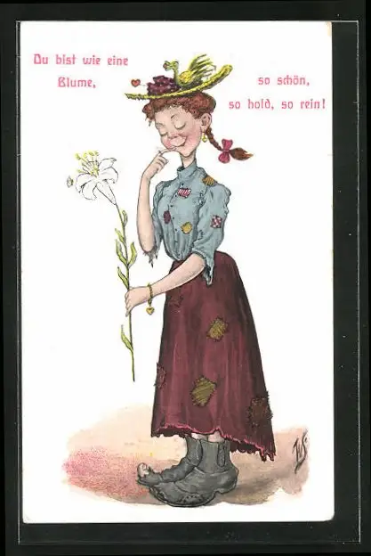 Künstler-AK Willi Scheuermann: Landstreicherin mit einer Lilienblüte