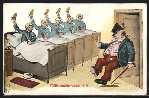 Künstler-AK Willi Scheuermann: Mitternachts-Gespenster, Trinkerhumor