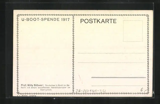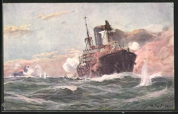 Künstler-AK Willy Stoewer: Handelsdampfer kämpft gegen dt. U-Boot im Sperrgebiet
