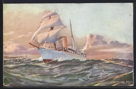 Künstler-AK Willy Stoewer: Segelschiff in stürmischer See