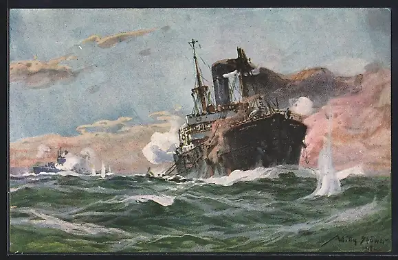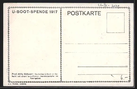 Künstler-AK Willy Stoewer: U-Boot-Spende 1917, Deutsches U-Boot im Sperrgebiet