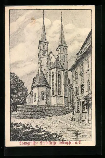 Künstler-AK Wimpfen a. S., Evangelische Stadtkirche