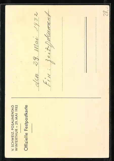 Künstler-AK Winterthur, V. Schweiz. Posaunentag 29. Mai 1932