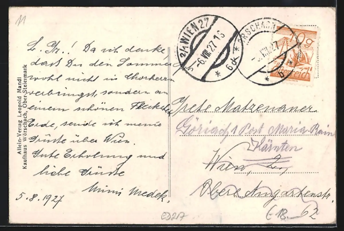gelaufen 1927, Eckknick li. oben, Stempelspur, guter Zustand